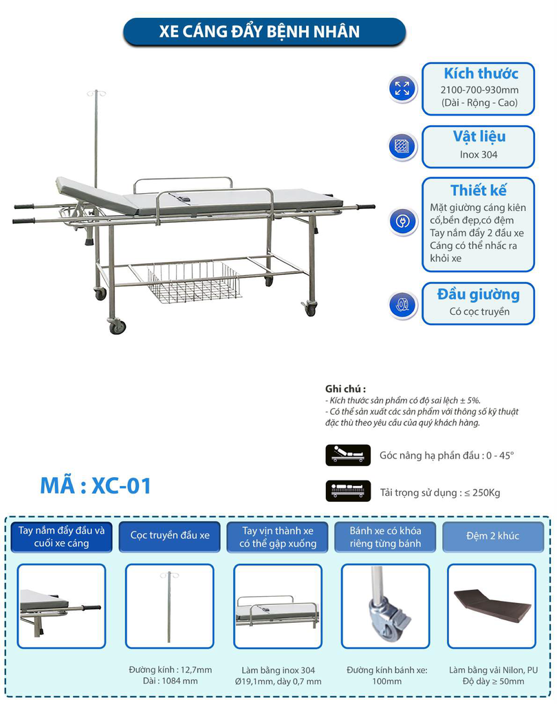 Giới thiệu giường bệnh nhân, giường y tế, cáng y tế bệnh nhân Inox: