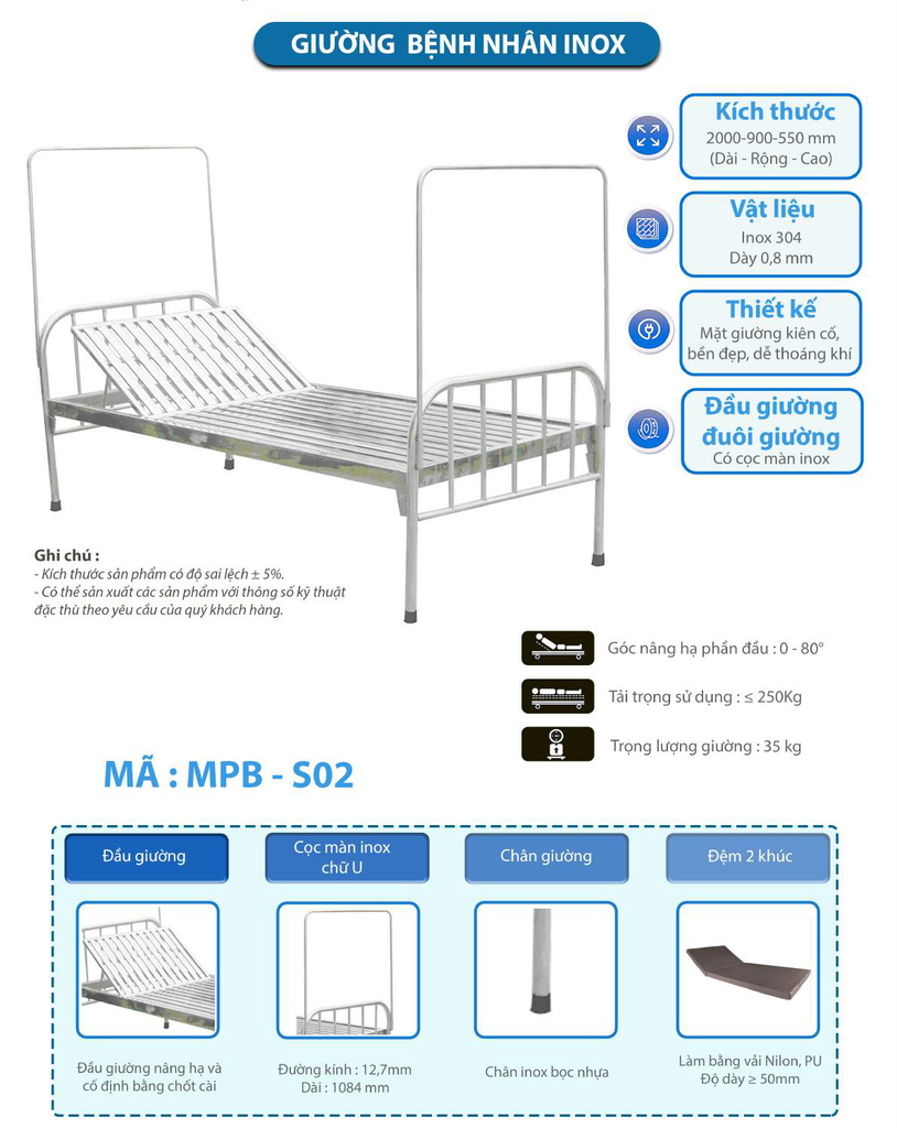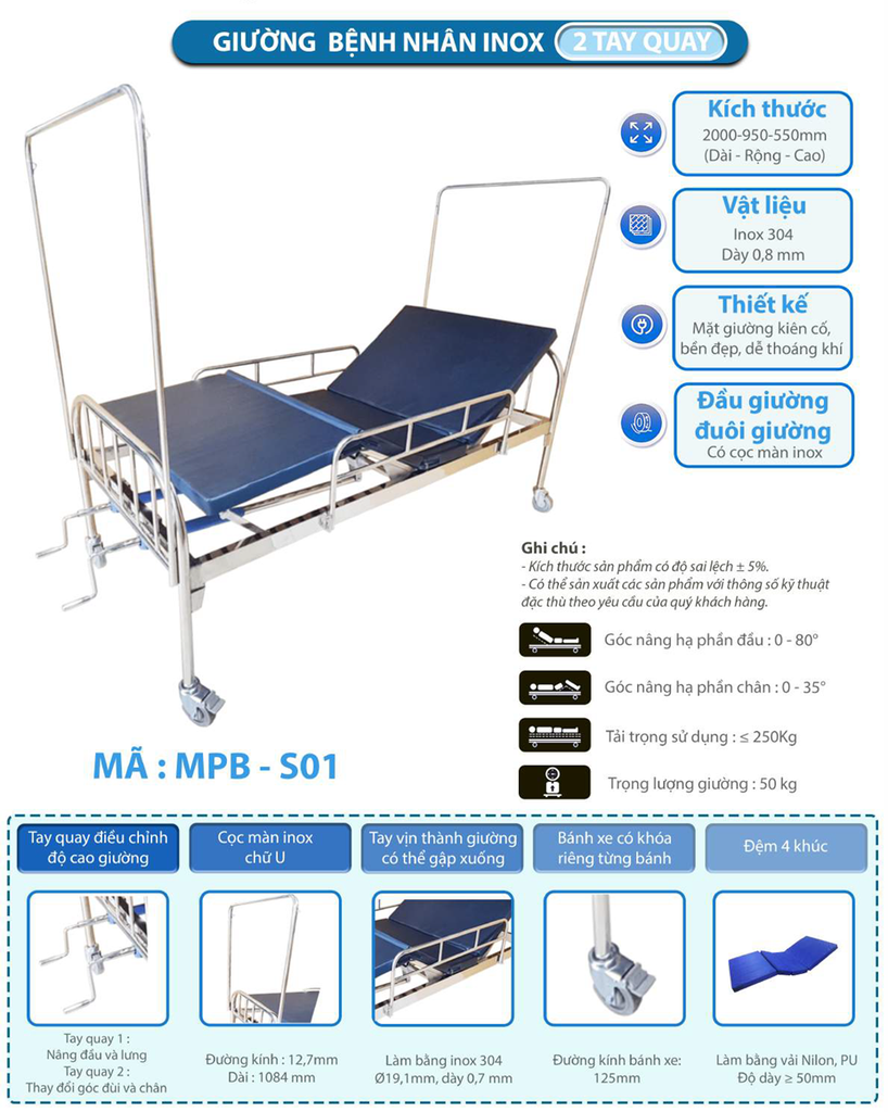 Giới thiệu giường bệnh nhân, giường y tế Inox: