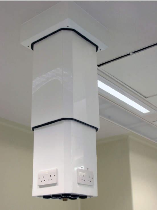 • Trụ khí treo trần cố định và trụ khí treo trần có thể rút vào được dùng để phân phối khí y tế, AGSS và các ổ điện phục vụ cho các thiết bị máy gây mê/ bàn mổ trong khi không gian hoạt động không có ống và dây cáp.